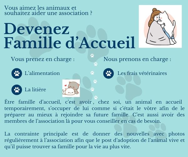 vous décidez d'adopter un chat première chose une visite de rencontre avec le chat minimum 7 jours avant .après avoir rempli le certificat d'engagement obligatoire, le chat que vous aurai choisi sera identifié ,vacciné et aura les soins dont il a besoin si ce n'ai pas déjà fais .un fois le chat prêt a rejoindre votre famille il y aura le certificat d adoption de l association une demande de participation de 180 euros pour les frais vétérinaire qui comprend l'identification, la vaccination, la stérilisation a l'âge de 6 mois, vermifuge anti puce ect pour plus de renseignement je suis a votre disposition au 06 95 83 73 04 uniquement a partir de 15h